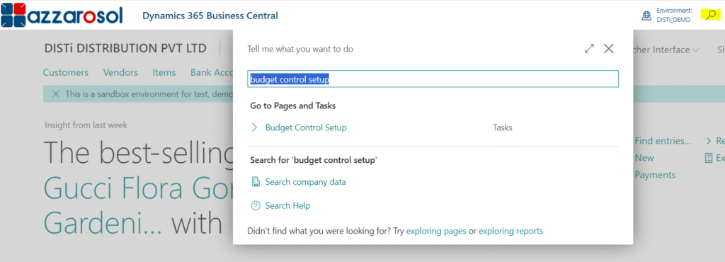 Choose the global search Budget control setup, and then choose the Budget control setup option. (Refer to Image 1)