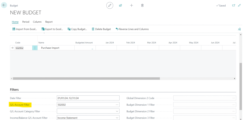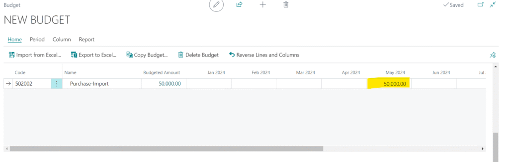 Now user can add the amount according to the month for the G/L account as highlighted in the Image below