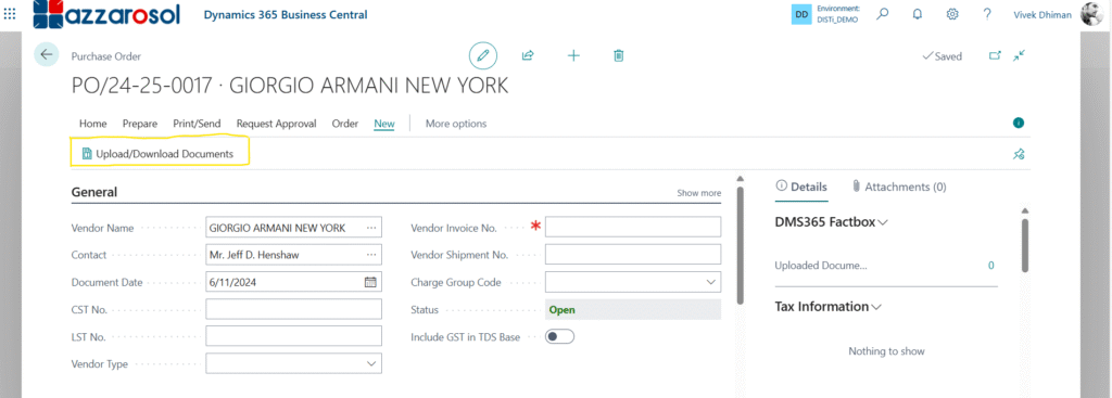 6. Upload file on SharePoint from Business Central
